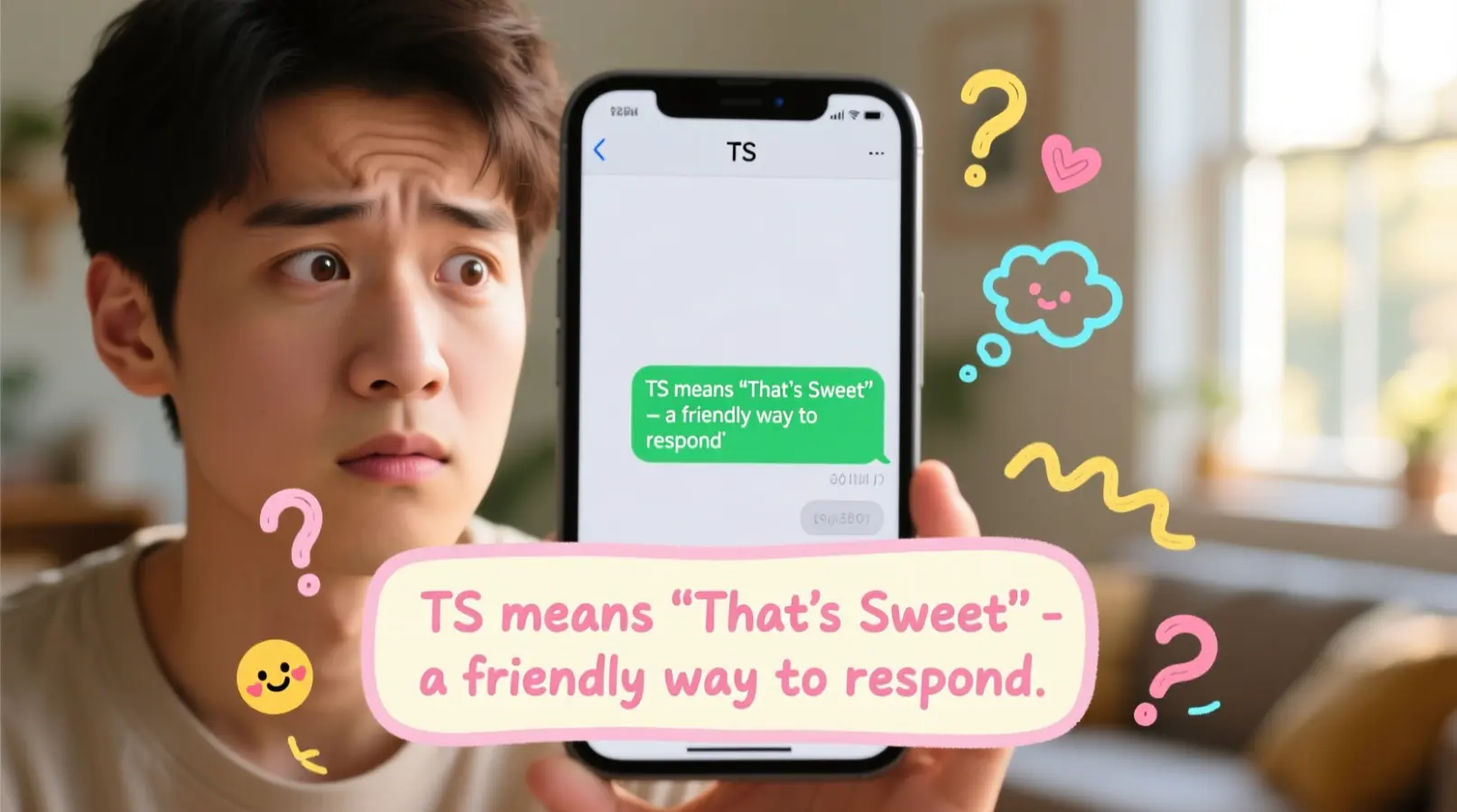 Quick Answer: TS means “That’s Sweet.” It’s a casual and friendly way of showing appreciation or acknowledging a kind gesture in a text or social media chat. Now you can finally reply confidently without guessing!